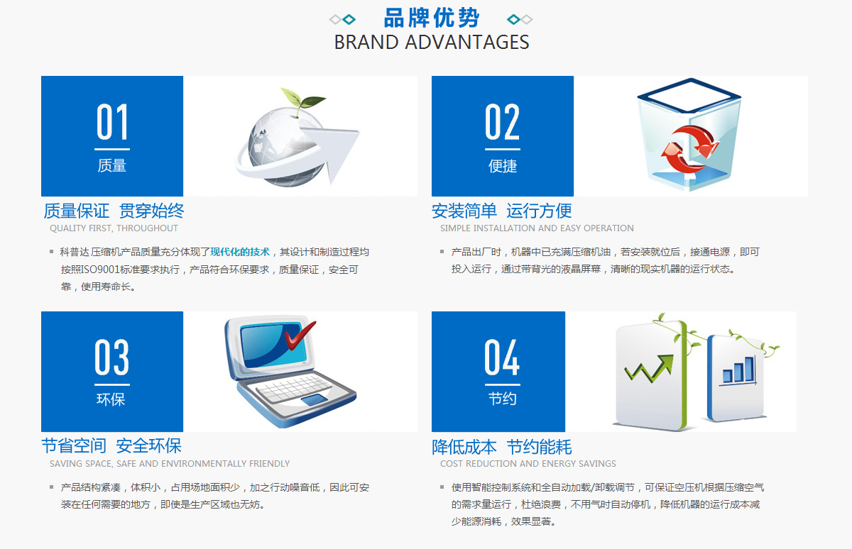 | 空壓機在工廠維護中主要需求和應用 |  | 購買空壓機需要考慮什么 |  | 科普達教您空壓機保養八步走 |  | 螺桿空壓機取代活塞機的原因 |  | 如何確保永磁變頻空壓機電機不退磁? |  | 空壓機行業新貴!永磁空壓機6大亮點 |